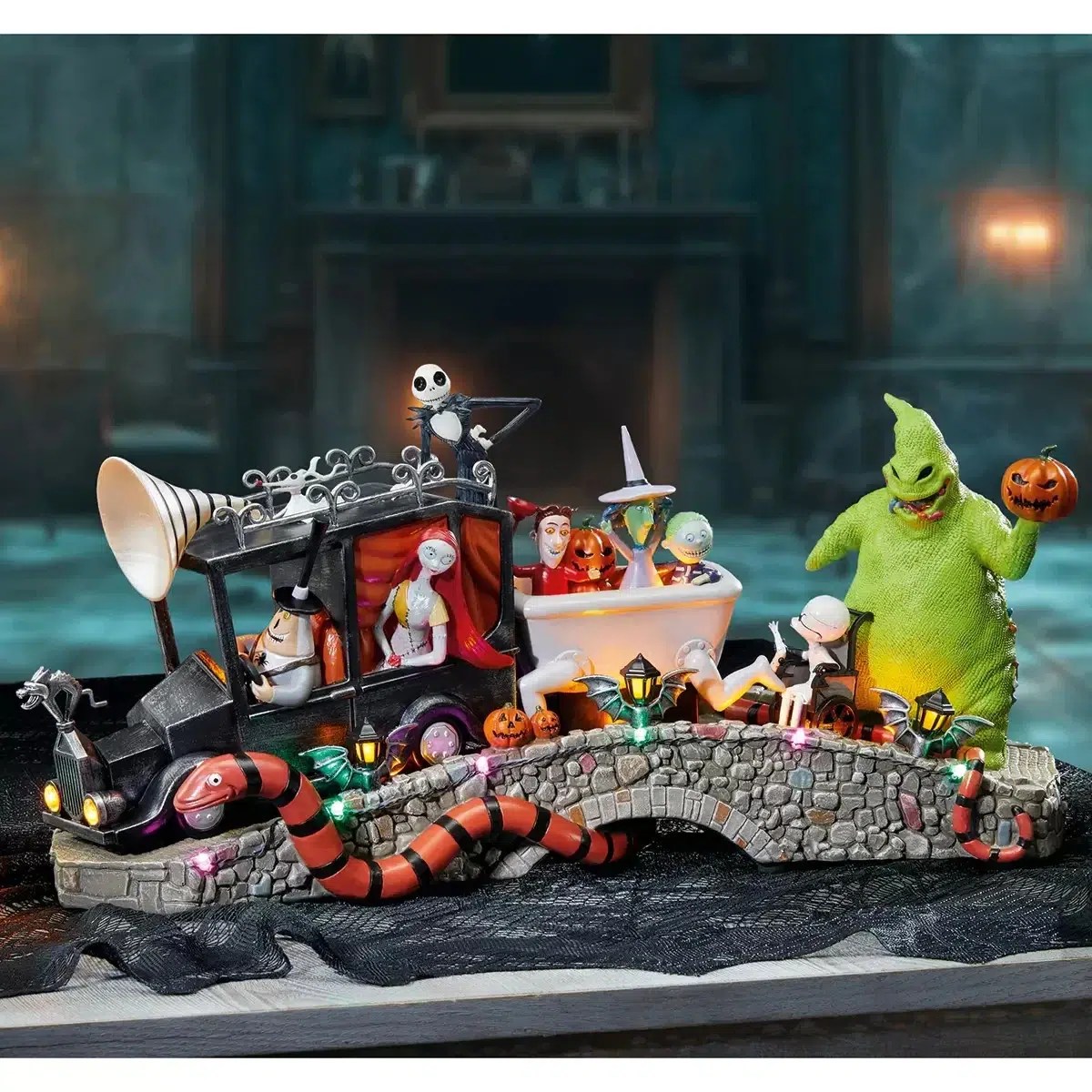 Jack, Sally and Oogie Boogie are up to their tricks and treats again. This time they’re spreading JOY in their ride over a bridge to fun. A delightful scene filled with dark yet funny personality. A perfect spooky centerpiece for any Halloween home décor.