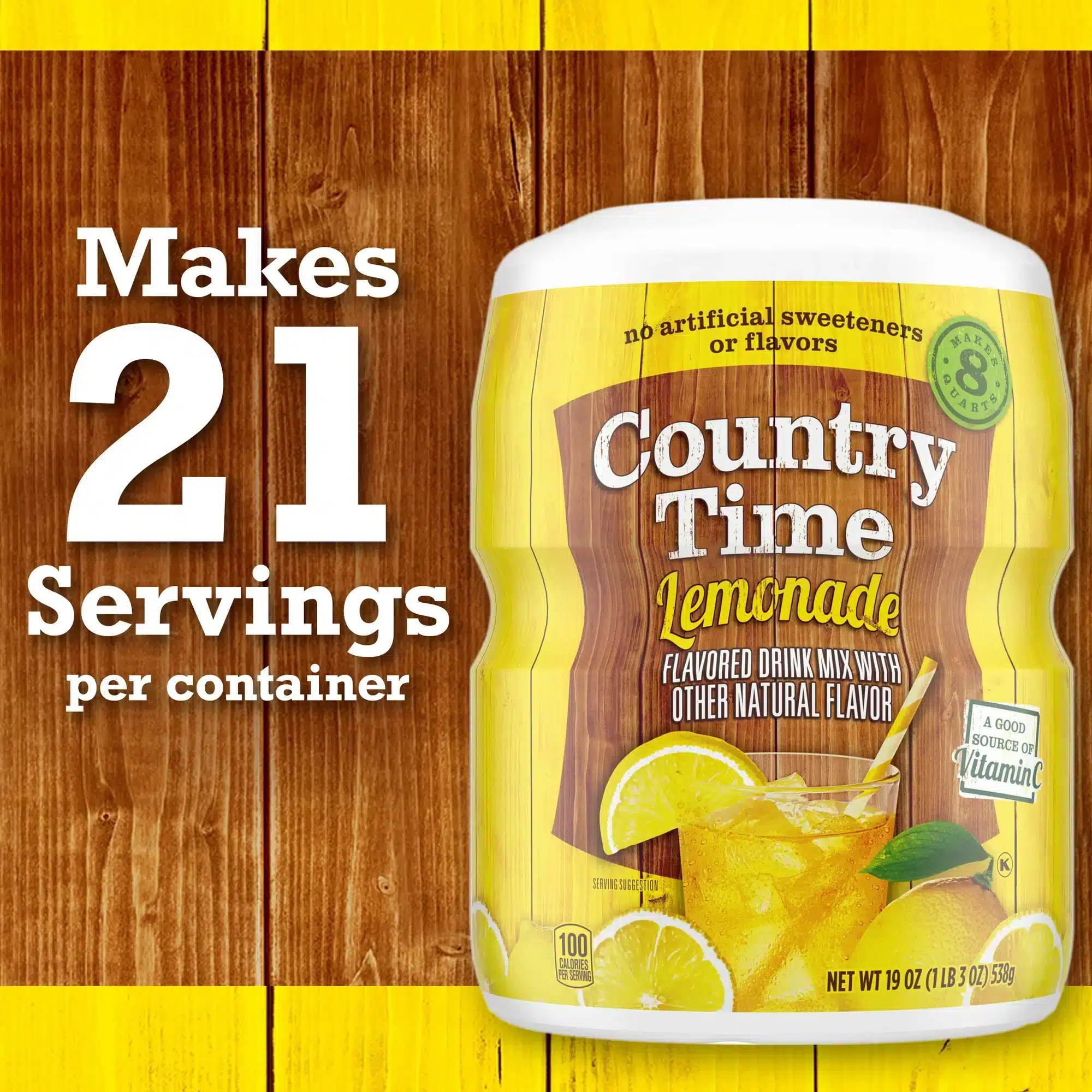 • One 19 oz canister of Country Time Lemonade Naturally Flavored with other natural flavor Powdered Drink Mix