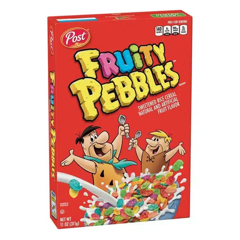 Celebrate creativity and enjoy fruity Yabba Dabba Doo deliciousness with every bowl of Post Fruity PEBBLES Kids Cereal. These colorful gluten free cereal pieces spark joy at breakfast time for kids and help spark little imaginations for a day full of adventures. Fruity PEBBLES cereal rice crisps deliver a sweet fruity crunch with every spoonful and inspires kids to power their inner creativeness. There are endless ways to enjoy the fruity flavor of Fruity PEBBLES kid cereal. Enjoy this crisped rice cereal by itself or in a classic morning cereal bowl with milk. Or, let the creativity run wild and come up with all sorts of fun homemade dessert ideas with this cereal box of Fruity PEBBLES rice crisp. Use dried Fruity PEBBLES cereal to top bite sized mini cheesecake cups or use this gluten free cereal to make a fun Fruity PEBBLES mug cake. You can even use this rainbow colored fruity cereal with other kids art supplies to craft delightful kid art projects that little ones will have a blast creating. No matter the age, this vibrant cereal box of sweetened cereal rice crisps appeals to creators of all ages and inspires everyone to dream big. Encourage kids to Never Stop Doo-ing with Post Fruity PEBBLES Cereal.