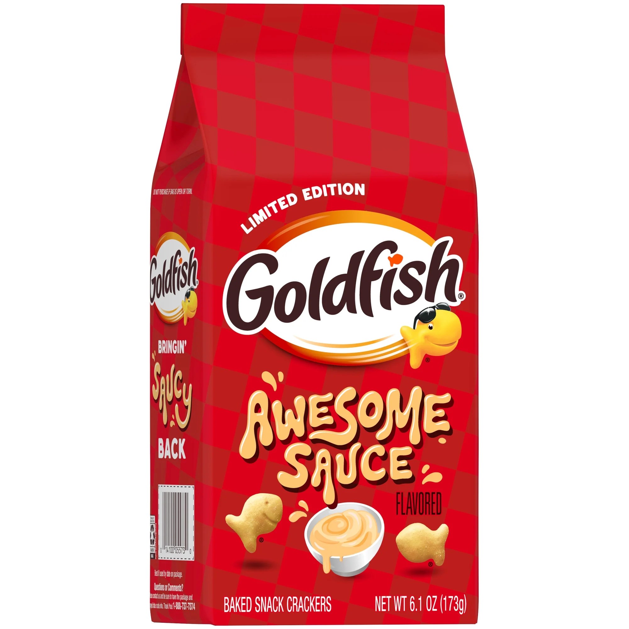 • Includes one (1) 6.1-ounce bag of Goldfish Awesome Sauce Flavored Crackers