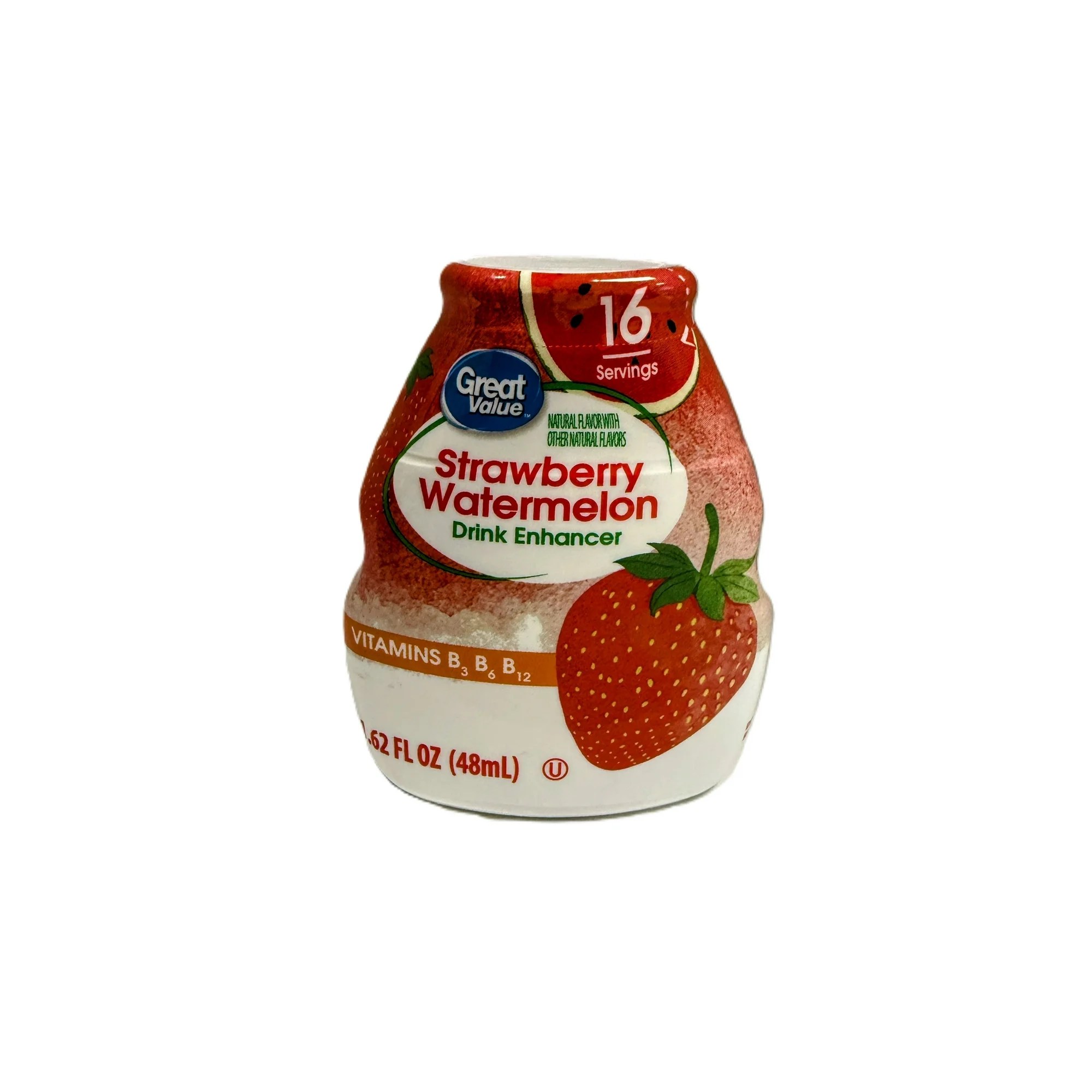 Add a burst of flavor to your ordinary water or drink with just one squeeze of Great Value Strawberry Watermelon Liquid Drink Enhancer. It packs strawberry and melon flavors and B vitamins into your favorite beverage without any calories or added sugar. There’s no refrigeration required, so you can take it wherever you go. You can enhance your bottled or tap water with our flavorful drops, but you can also add this drink enhancer to your favorite sparkling water, tea, juice, or cocktail. You can customize the strength of your flavor by squeezing twice.  Mix and match your favorite Great Value flavors or enjoy one delicious flavor at a time- the choice is yours. Enhance the flavor of your water with Great Value Strawberry Watermelon Liquid Drink Enhancer.