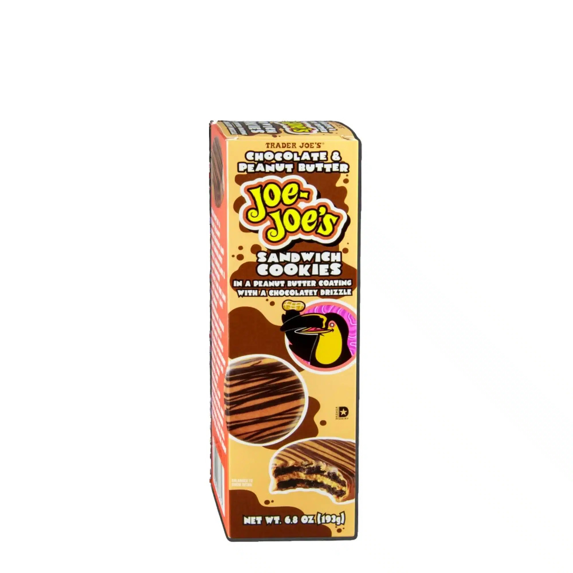 Inspired by one of the most popular flavors in our holiday-season “Astounding Multi-Flavored Joe-Joe’s” collection, Trader Joe’s Chocolate Peanut Butter Joe-Joe’s feature an unbeatable flavor-combination. And they do it in the form of our eponymous sandwich cookies. Instead of vanilla crème between the two cocoa-flavored cookies, however, you’ll find a creamy, peanut butter filling in its place. We could have stopped there… but we didn’t. Instead, we doubled-down on those flavors by entirely enrobing these Joe-Joe’s in a creamy, peanut butter coating, then finishing them off with a sweet, chocolatey drizzle. (It’s the peanut butter coating that makes these a little different than the Chocolate & PB Joe-Joe’s you’ll find in our holiday collection; those are coated only in chocolate.) Have them with a cold glass of milk or a hot mug of coffee. Or just have them on their own.
